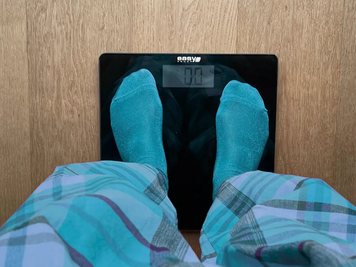 Pacjent stoi na wadze - leczenie otyłości w Krakowie - Przylądek Równowagi